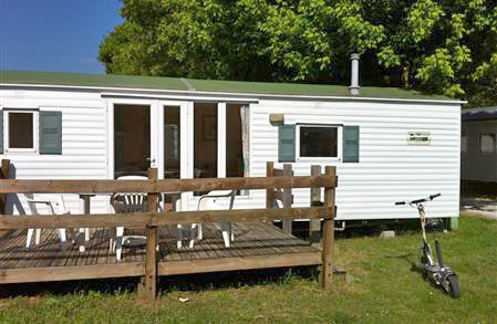 Mobil-home Confort pour 2 à 4 personnes avec terrasse en bois.